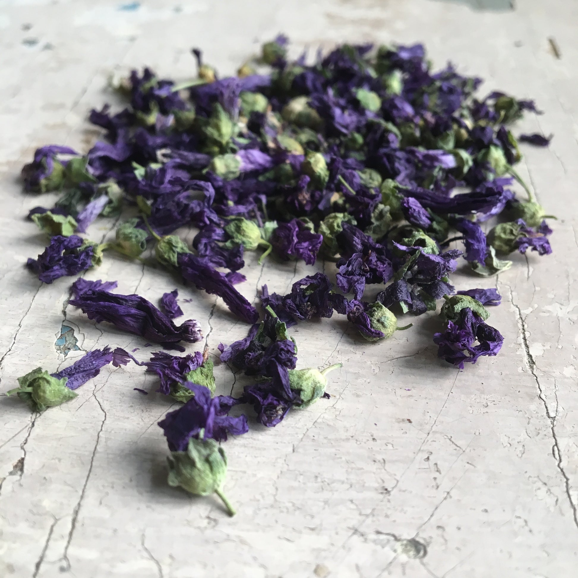 Mályva színű virágok. Ömlesztett termék. 30 gr-os, 50 gr-os egységekben és 23 gr-os üvegekben kapható. Nagyobb tömegű vásárlások esetén több egység vásárlása szükséges (jelen esetben adja meg, ha a terméket külön egységben szeretné átvenni, ellenkező esetben minden ugyanabba a tasakba kerül).